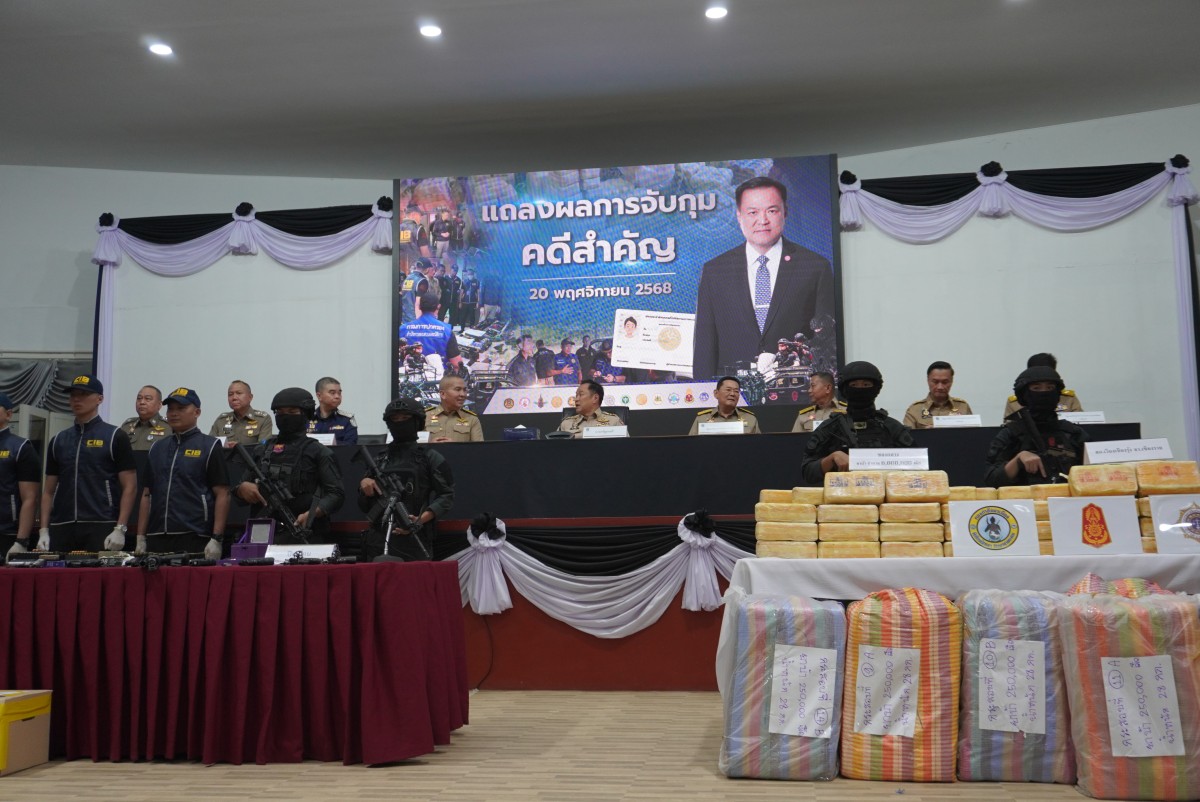 วันนี้ (20 พ.ย. 68) เวลา 10.40 น. นายอนุทิน ชาญวีรกูล นายกรัฐมนตรีและรัฐมนตรีว่าการกระทรวงมหาดไทย นำแถลงผลการปฏิบัติการ “ยุทธการตัดหมอกเวียงแหง” โดยกรมการปกครอง กระทรวงมหาดไทย และภาคีเครือข่าย และ “ยุทธการสกัดยานรก” โดยสำนักงานตำรวจแห่งชาติ และภาคีเครือข่าย โดยมี พล.ต.ท.รุทธพล เนาวรัตน์ รมว.ยุติธรรม นายนภินทร ศรีสรรพางค์ รัฐมนตรี รมต.ประจำสำนักนายกรัฐมนตรี นายทรงศักดิ์ ทองศรี รมช.มหาดไทย นายศักดิ์ดา วิเชียรศิลป์ รมช.มหาดไทย พล.ท.อดุลย์ บุญธรรมเจริญ รมช.กลาโหม น.ส.ไตรศุลี ไตรสรณกุล เลขาธิการนายกรัฐมนตรี นายอรรษิษฐ์ สัมพันธรัตน์ ปลัดกระทรวงมหาดไทย นายภาสกร บุญญลักษม์ รองปลัดกระทรวงมหาดไทย หัวหน้ากลุ่มภารกิจด้านกิจการความมั่นคงภายใน นายนฤชา โฆษาศิวิไลซ์ อธิบดีกรมการปกครอง นายรัฐพล นราดิศร ผู้ว่าราชการจังหวัดเชียงใหม่ นายชูชีพ พงษ์ไชย ผู้ว่าราชการจังหวัดเชียงราย และหัวหน้าส่วนราชการ ข้าราชการ ข้าราชการ ทั้งตำรวจ ป.ป.ท. ป.ป.ช. ทหาร ฝ่ายปกครอง และสื่อมวลชน ร่วมเป็นจำนวนมาก