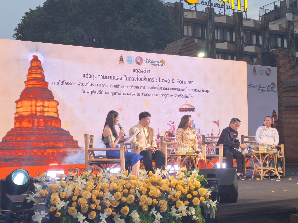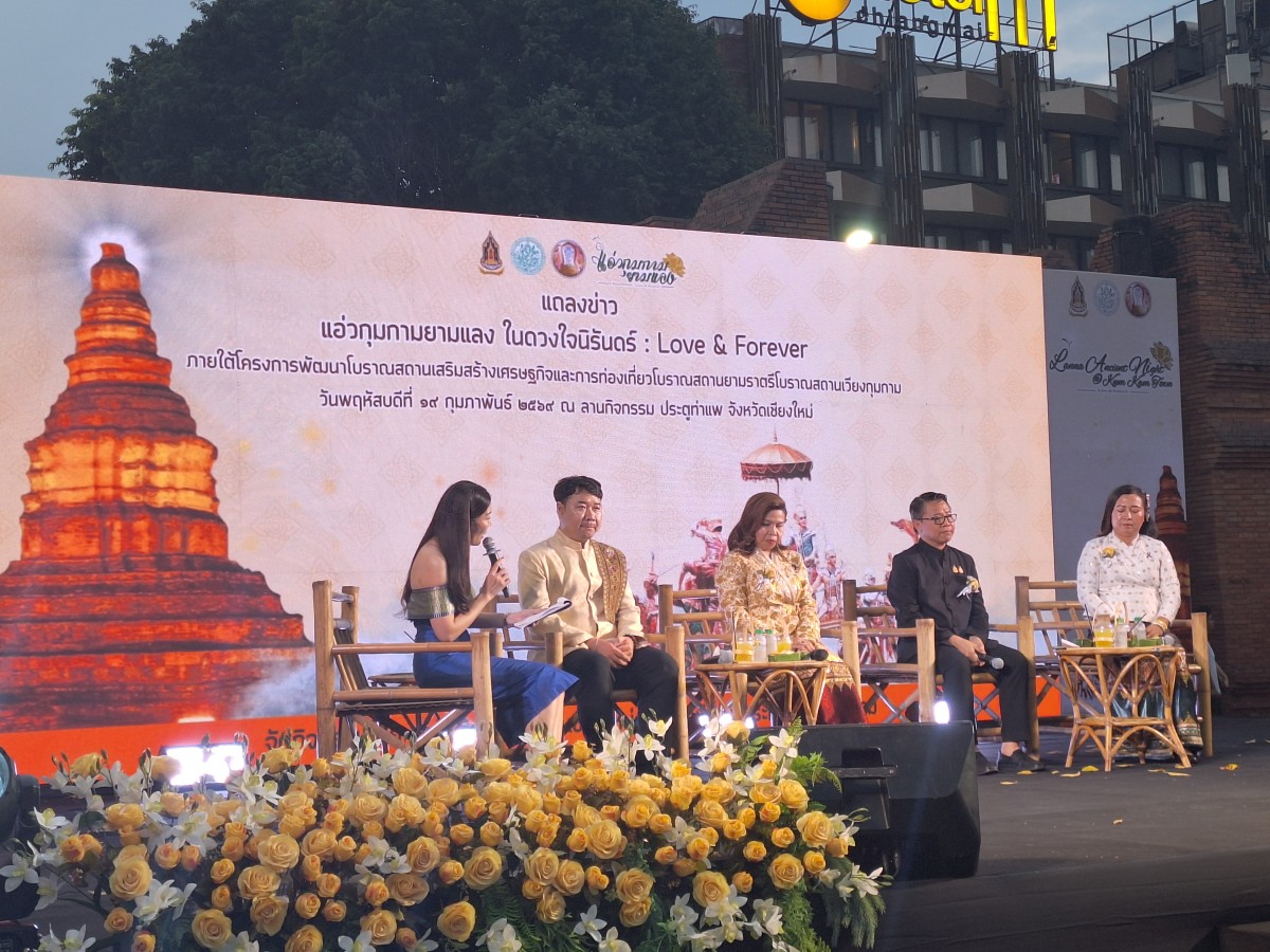วันพฤหัสบดี ที่ 19 กุมภาพันธ์ 2569 ณ ลานประตูท่าแพ กระทรวงวัฒนธรรม โดย กรมศิลปากร สำนักศิลปากรที่ 7 เชียงใหม่ จัดงานแถลงข่าวงานท่องเที่ยวโบราณสถานยามค่ำคืน ณ เวียงกุมกาม “แอ่วกุมกามยามแลง ในดวงใจนิรันดร์ Love and Forever” โดยมี นายชินณวุฒิ วิลยาลัย ผู้อำนวยการสำนักศิลปากรที่ 7 เชียงใหม่ พร้อมด้วย นางสาวปุณณภา สุขสาคร. ผู้อำนวยการหอสมุดแห่งชาติรัชมังคลาภิเษกเชียงใหม่ ,นางเกษราภรณ์ กุณรักษ์หัวหน้าหอจดหมายเหตุแห่งชาติฯ เชียงใหม่ และนายณัฐพงษ์ แมตสอง หัวหน้าพิพิธภัณฑสถานแห่งชาติ