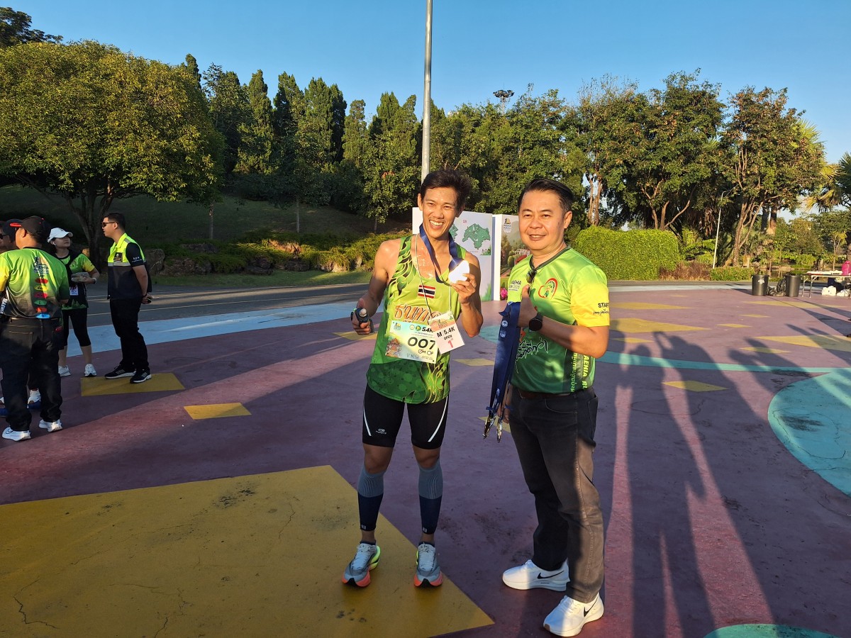 บรรยากาศภายในงานเต็มไปด้วยความอบอุ่นและสนุกสนาน โดยมีนักวิ่งและนักท่องเที่ยวเข้าร่วมกิจกรรมเป็นจำนวนมาก ท่ามกลางทัศนียภาพที่สวยงามของอุทยานหลวงราชพฤกษ์ในช่วงปลายปี.