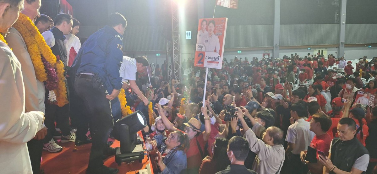 เพราะฉะนั้นการเมืองต้องเป็นปึกแผ่น ต้องเข้มแข็ง ขอประชาชนอย่าไปแบ่งคะแนนให้คนอื่น ขอให้เลือกเพื่อไทย 100 เปอร์เซ็นต์ ถ้าทำไม่ได้ ให้มันรู้ไป ตอนนี้ตนกำลังคิดพัฒนาคนและสินค้าในแต่ละจังหวัด และต้องมีตัวแทนทำ บางจังหวัดผู้ว่าฯ ก็เต็มใจทำ แต่บางจังหวัดผู้ว่าฯ เหลืออีก 1 ปีจะเกษียณ ก็รู้สึกว่าตนเองขี้เกียจทำ เพราะฉะนั้นจึงต้องมาเอานายกอบจ.ของเรา สินค้าขายใน TikTok ขายดิบขายดี แต่สินค้าบ้านเราไม่มีใครเป็นเจ้าภาพ การพัฒนาคนก็เหมือนกัน จะเอาคนมาฝึกเพื่อให้เงินเดือนดีขึ้น และเชื่อว่าหลายคนที่นั่งอยู่ตรงนี้อาจจะมีหัวศิลปะ หัวคิดสร้างสรรค์ แต่ไม่มีโอกาส ต้องไปทำนาทำไร่ ซึ่งทำได้แต่ก็รู้สึกเสียดาย ซึ่งคนมีหัวต้องได้รับการพัฒนา ที่เราเรียกว่าซอฟต์พาวเวอร์ ตนจะใช้ อบจ.และจังหวัดเป็นแกนกลาง และต้องทำให้คนแข็งแรง และเอาของที่ผลิตในพื้นที่ขายได้ผ่านโซเชียลของเขา