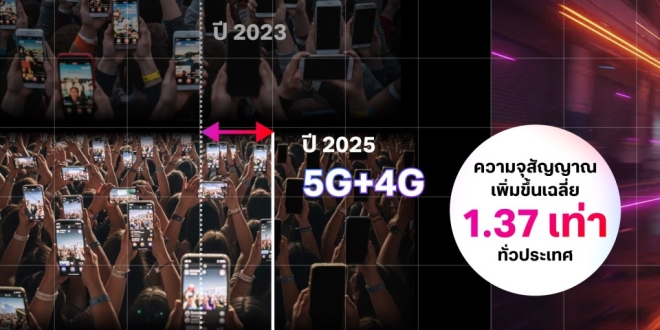 ผลจากการทำงานร่วมกันของเครือข่าย 5G และ 4G ทำให้ความจุสัญญาณเฉลี่ยทั่วประเทศเพิ่มขึ้น 1.37 เท่า ขณะที่เฉพาะเครือข่าย 5G ความจุสัญญาณเพิ่มขึ้นเกือบ 2 เท่า สะท้อนการใช้คลื่นความถี่และการบริหารโครงข่ายที่มีประสิทธิภาพมากขึ้น ส่งผลให้การใช้งานรวดเร็ว ลื่นไหล และต่อเนื่องกว่าเดิม แม้ในพื้นที่ผู้ใช้งานหนาแน่น