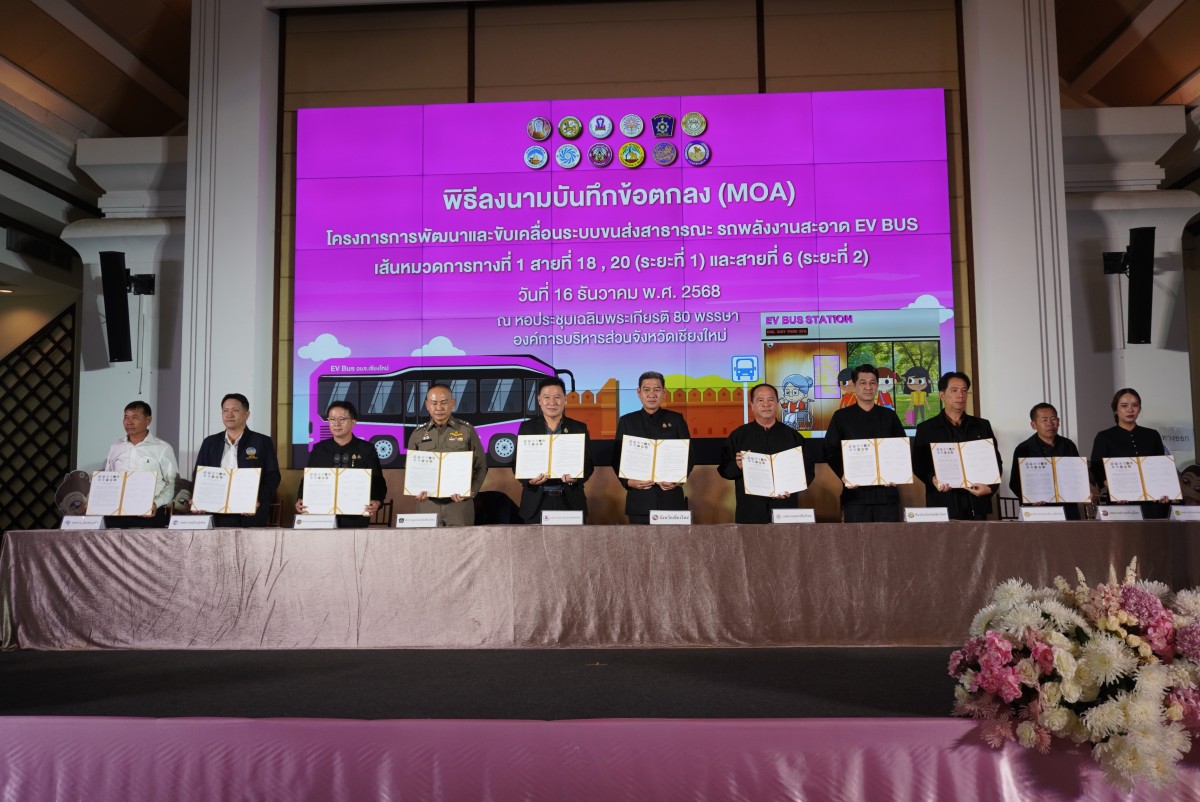 อบจ.เชียงใหม่ลงนาม MOA กับพันธมิตร 11 องค์กรเพื่อพัฒนาและขับเคลื่อนระบบขนส่งสาธารณะรถพลังงานสะอาด EV BUS ในเขตเมืองเชียงใหม่ “พิชัย”เผยนำร่อง 2 เส้นทางเชื่อมศูนย์ขนส่งแหล่งเศรษฐกิจ สถานศึกษาและสถานพยาบาล ใช้เงินลงทุน 200-300 ล้าน ด้าน”ผู้ว่าฯรัฐพล”หวังเป็นแรงขับเคลื่อนสู่คมนาคมอัจฉริยะ