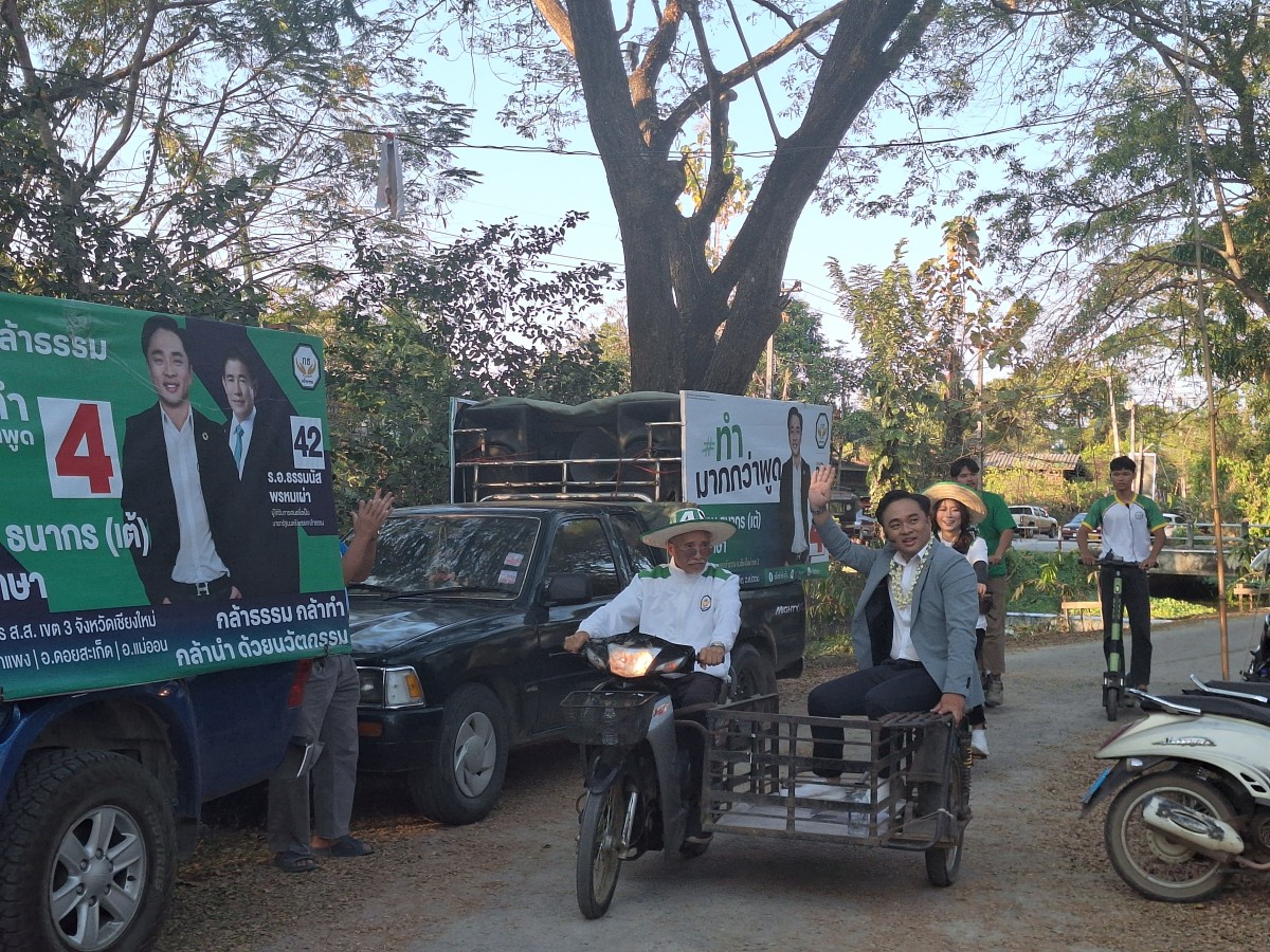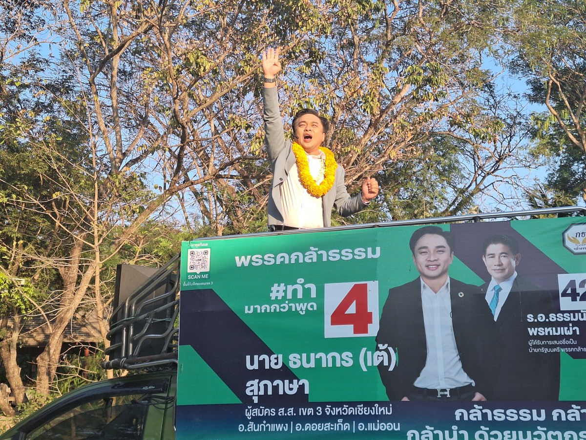 “เต้”ธนากร สุภาษา ผู้สมัครหมายเลข 4 เขต3 พรรคกล้าธรรม ให้สัมภาษณ์สื่อมวลชนว่า การเปิดเวทีปราศรัยครั้งนี้เป็นเวทีใหญ่โค้งสุดท้ายก่อนถึงวันเลือกตั้ง 8 ก.พ.69 ซึ่งตนยอมรับว่าต้นทุนในการเปิดเวทีจะสู้ 2 พรรคใหญ่ที่ลงมาช่วยผู้สมัครของตน แต่ตนใช้วิธีเดินหาเสียงเข้าหาประชาชนทั้ง 3 อำเภอคือดอยสะเก็ด สันกำแพงและแม่ออนครบทุกตำบล บางพื้นที่ตนลงไปหลายรอบและยังจะเดินหาเสียงขอคะแนนจากคนบ้านเฮา เลือก”เต้”คนสันกำแพงคนนี้ ที่ผ่านมาเดินหาเสียงจะไม่โจมตีใคร และไม่กลัวผู้สมัครทั้ง 13 คนที่ลงสู้กันในเขตเลือกตั้งนี้ แต่ยอมรับว่ากลัวพรรค เพราะมีต้นทุนพรรคไม่าเท่ากัน ทุกวันนี้แข่งกับพรรคไม่ได้แข่งกับผู้สมัคร แต่ถ้า 1 เสียงของคนบ้านเฮาช่วยเลือกเต้ก็ดีใจแล้ว