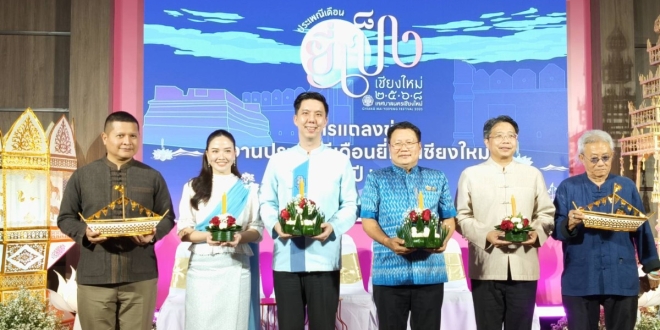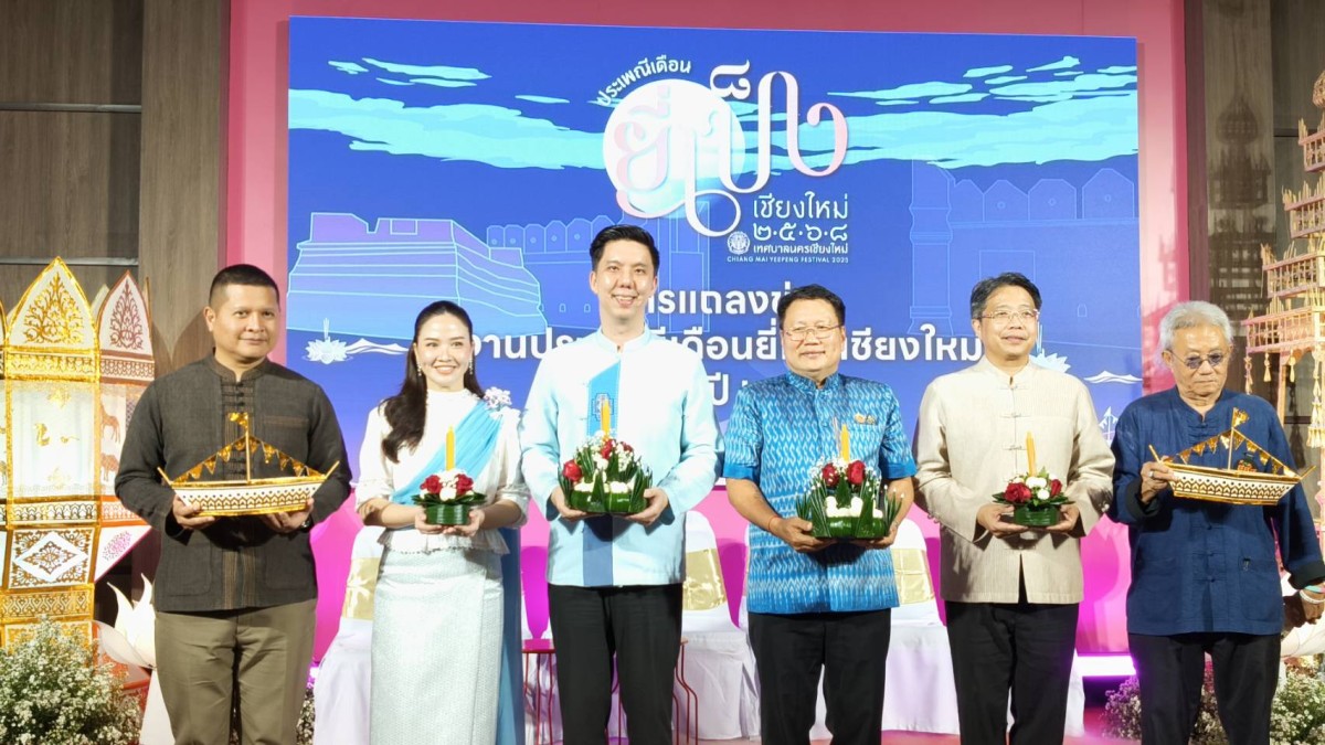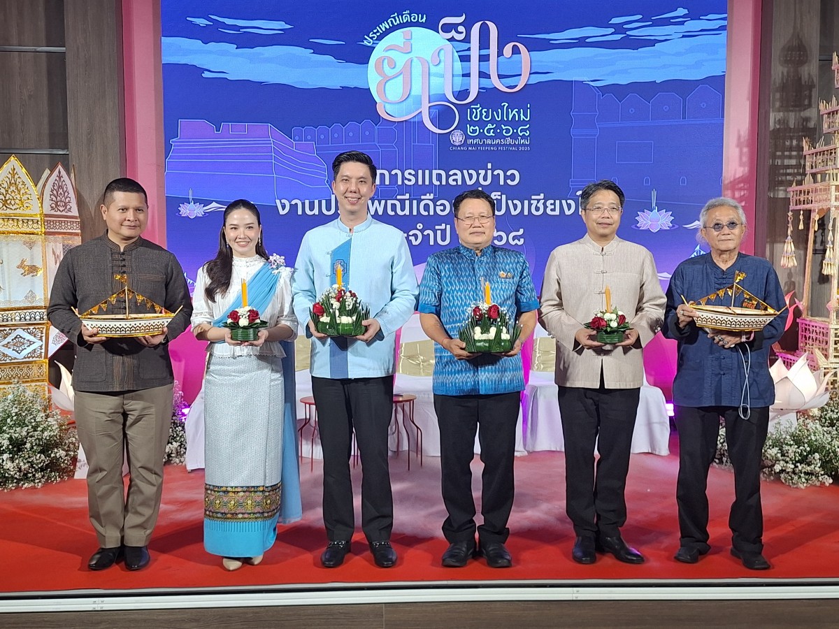 นายวัชรายุธ์ กัววงศ์ ผู้อำนวยการการท่องเที่ยวแห่งประเทศไทย (ททท.) สำนักงานเชียงใหม่ และ นายมานพ แย้มอุทัย ผู้ทรงคุณวุฒิ สำนักงานกองทุนสนับสนุนการสร้างเสริมสุขภาพ (สสส.) ร่วมแถลงข่าวประเพณีเดือนยี่เป็งเชียงใหม่ ประจำปี 2568 โดยปีนี้จัดงานภายใต้แนวคิด “มรดกแห่งนพบุรี สืบสานวิถีแห่งภูมิปัญญา วัฒนธรรมงามล้ำค่า ยี่เป็งล้านนาสู่สากล” โดย เทศบาลนครเชียงใหม่ บูรณาการร่วมกับองค์กรภาคีเครือข่ายทุกภาคส่วน เพื่อจัดงานประเพณีเดือนยี่เป็งเชียงใหม่ ประจำปี 2568 ระหว่างวันที่ 4 – 6 พฤศจิกายน 2568 อย่างเต็มรูปแบบและยิ่งใหญ่