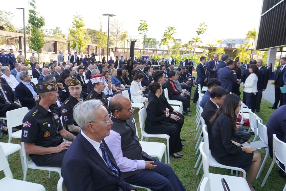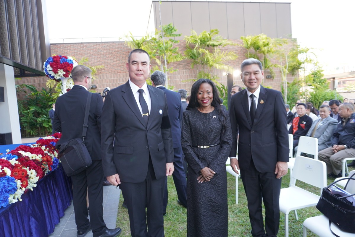 นายไมเคิล เจ. รีกาส รัฐมนตรีช่วยว่าการกระทรวงการต่างประเทศสหรัฐฯ ฝ่ายบริหารธุรการและทรัพยากร กล่าวว่า อาคารที่ทันสมัยแห่งนี้เป็นสัญลักษณ์ที่แสดงถึงความแข็งแกร่งของความเป็นหุ้นส่วนที่ยั่งยืนของสองประเทศ ผ่านการเคารพกันและกัน บนผลประโยชน์ที่มุ่งมั่นในภูมิภาค ส่งเสริมศักยภาพและมูลค่าการค้า ยกระดับและส่งเสริมเศรษฐกิจ เป็นสะพานเชื่อมประชาชนสองประเทศเข้าด้วยกันเกิดประโยชน์โดยตรงของกันและกัน เพื่อต่อยอดอนาคตกว่า 2 ศตวรรษในฐานะหุ้นส่วนร่วมกัน ซึ่งชาวอเมริกันกว่า 1 ล้านคนมาท่องเที่ยวเพราะชื่นชอบธรรมชาติและวัฒนธรรม การต้อนรับที่อบอุ่น จนทำให้กว่า 1 แสนคนเรียกประเทศไทยว่า บ้าน และมาพำนักถาวรที่นี่ และสถานกงสึลฯแห่งใหม่นี้ยังเป็นสัญญลักษณ์ที่แสดงถึงความปรารถนาดีของประธานาธิบดีทรัมป์ในการดูแลพลเมืองสหรัฐฯทั่วโลกด้วย