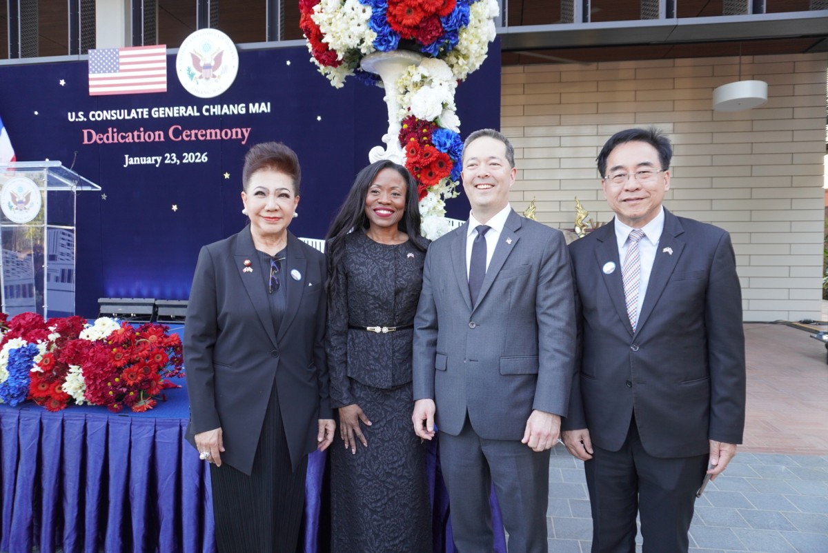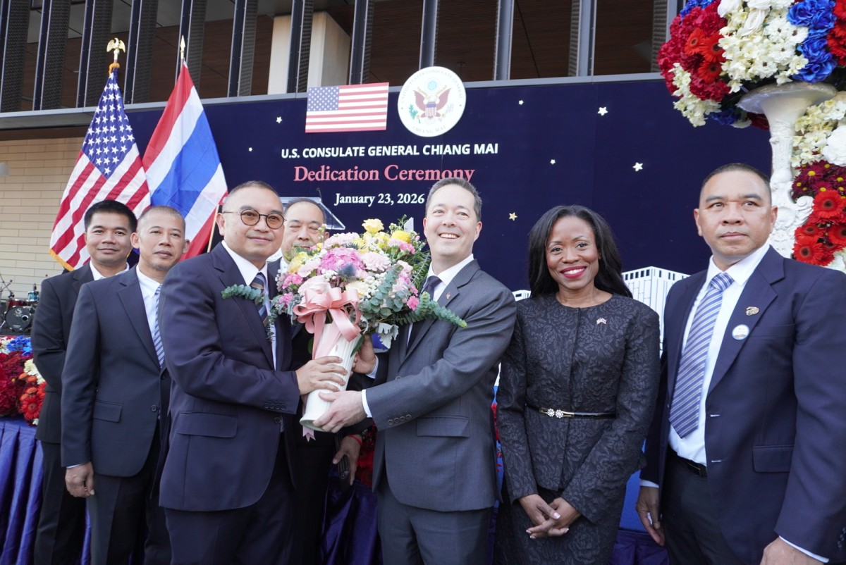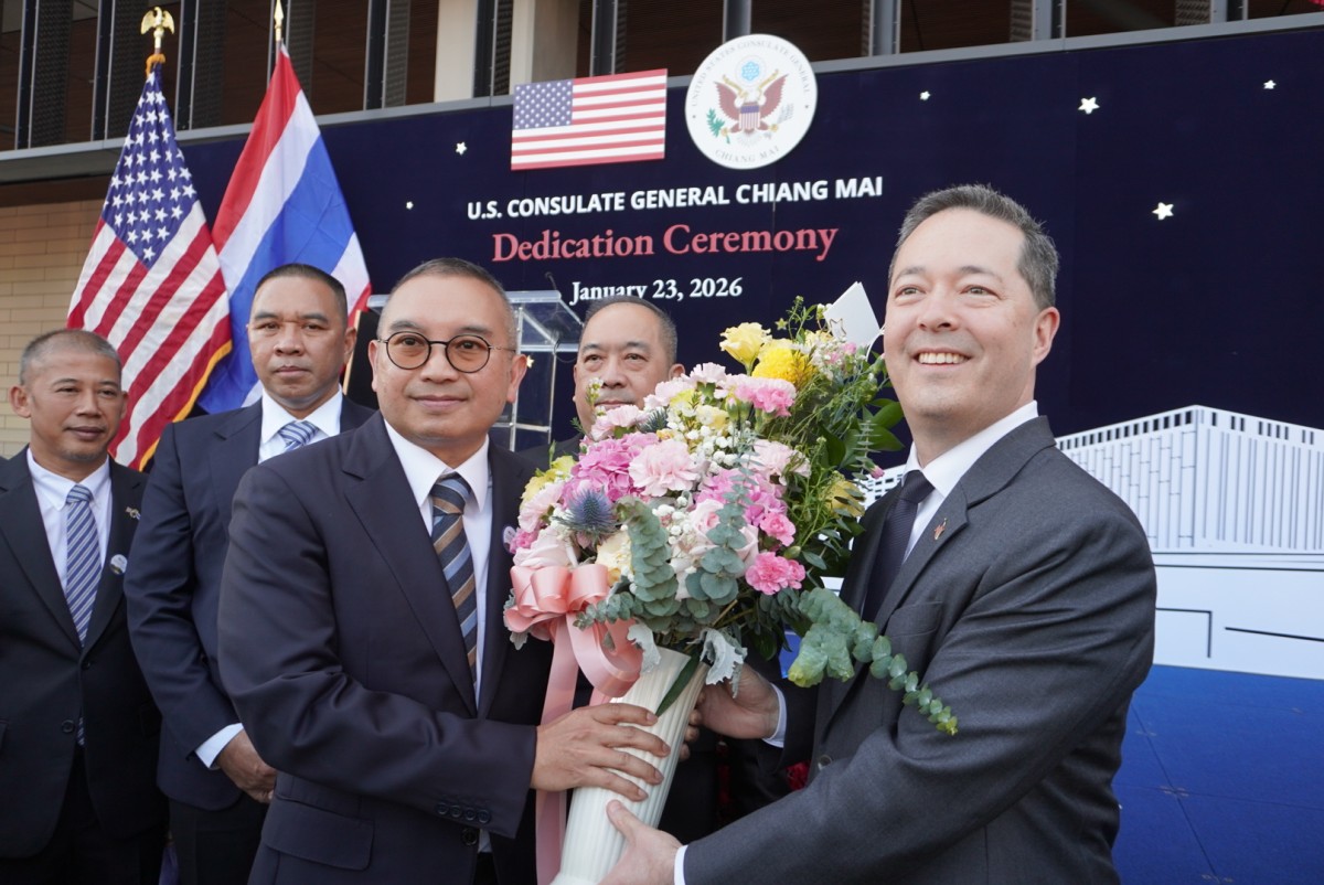 เมื่อเวลา 16.45 น. วันที่ 23 มกราคม 2569 ที่อาคารสถานกงสุลใหญ่สหรัฐอเมริกาเชียงใหม่ แห่งใหม่ ริมถนนซุปเปอร์ไฮเวย์เชียงใหม่-ลำปาง ตำบลหนองป่าครั่ง อำเภอเมืองเชียงใหม่ จังหวัดเชียงใหม่ นายไมเคิล เจ. รีกาส รัฐมนตรีช่วยว่าการกระทรวงการต่างประเทศสหรัฐฯ ฝ่ายบริหารธุรการและทรัพยากร และนายฌอน เค. โอนิลล์เอกอัครราชทูตสหรัฐฯ ประจำประเทศไทย ร่วมเป็นประธานเปิดอาคารสถานกงสุลใหญ่สหรัฐอเมริกาเชียงใหม่ แห่งใหม่อย่างเป็นทางการ พร้อมยืนยันความมุ่งมั่นของสหรัฐฯ ในการปกป้องและส่งเสริมผลประโยชน์ของสหรัฐฯ รวมถึงความมุ่งมั่นที่สหรัฐฯ มีต่อภาคเหนือของไทยมาอย่างยาวนาน ท่ามกลางส่วนราชการสำคัญของไทย หัวหน้าส่วนราชการ หน่วยงานภาครัฐและเอกชนในพื้นที่ 15 จังหวัดภาคเหนือเข้าพิธีดังกล่าวอย่างคับคั่ง อาทิ นางคีเลีย คัมมินส์ กงสุลใหญ่ประจำเชียงใหม่ นายวิชาวัฒน์ อิศรภักดี ผู้ช่วยรัฐมนตรีประจำกระทรวงการต่างประเทศไทย พล.อ.ณรงค์ฤทธิ์ คัมภีระ ผู้ช่วยผู้บัญชาการทหารบก นายรัฐพล นราดิศร ผู้ว่าราชการจังหวัดเชียงใหม่ นายวิวัฒน์ อินทร์ไทยวงศ์ ผู้ว่าราชการจังหวัดลำปาง พล.ท.กิดากร จันทรา รองแม่ทัพภาคที่ 3 พล.ต.ท.อาชยน ไกรทอง ผู้บัญชาการตำรวจปราบปรามยาเสพติด นายพิชัย เลิศพงศ์อดิศร นายกองค์การบริหารจังหวัดเชียงใหม่ เป็นต้น