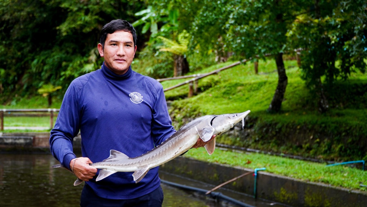 หลังจากประสบความสำเร็จจากการเพาะพันธุ์ปลาเรนโบว์เทราต์ได้ครบวงจรแล้ว ได้มีพระราชดำริให้ ทดลองเลี้ยงปลาน้ำเย็นอีกชนิดหนึ่ง คือ ปลาสเตอร์เจียน เพื่อนำไข่ปลามาแปรรูปเป็น “คาเวียร์” กรมประมงจึงได้นำเข้าไข่ปลาสเตอร์เจียนพันธุ์ไซบีเรียนจากประเทศเยอรมนีมาเพาะเลี้ยง เวลาผ่านไป ๒ ปี เมื่อเอกซ์เรย์ตรวจเพศปลา พบว่าเป็นปลาตัวผู้ทั้งหมด ส่งผลให้ไม่มีไข่ปลาสำหรับทำคาเวียร์ คงทำได้เพียงจำหน่ายเป็นปลาเนื้อ