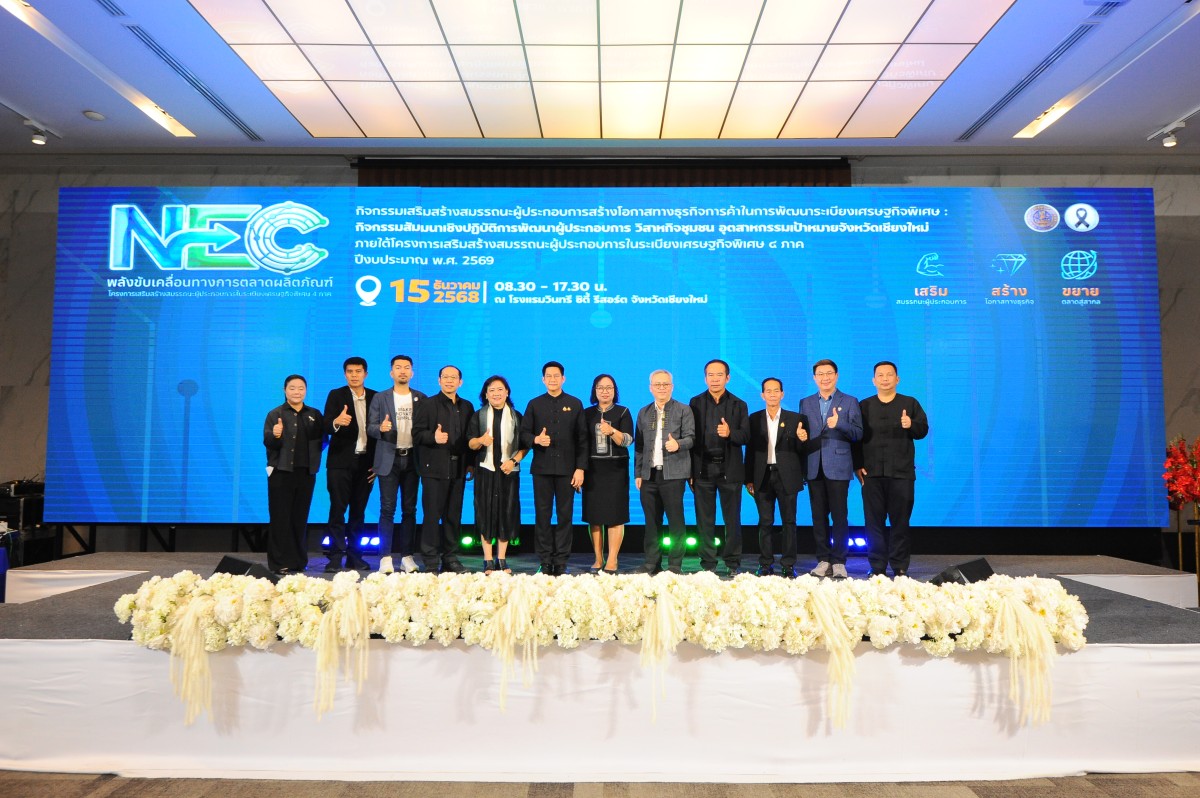 ด้านนางณัฐพร มหาไพบูลย์ พาณิชย์จังหวัดเชียงใหม่ กล่าวว่า การจัดกิจกรรมเสริมสร้างสมรรถนะผู้ประกอบการ สร้างโอกาสทางธุรกิจการค้าในการพัฒนาระเบียงเศรษฐกิจพิเศษ ในส่วนของระเบียงเศรษฐกิจภาคเหนือ Northern Economic Corridor หรือ NEC ในครั้งนี้ เป็นการดำเนินงานตามนโยบายของกระทรวงพาณิชย์ เพื่อสร้างเสริมสร้างความรู้ ความเข้าใจ ในเรื่องการพัฒนาระเบียงเศรษฐกิจพิเศษ และเสริมสร้างสมรรถนะผู้ประกอบการ ในการดำเนินธุรกิจ การประกอบการการค้าการลงทุน รองรับการปรับตัว มองหาโอกาส เชื่อมโยงใช้ประโยชน์จากผล/ทิศทางการพัฒนาระเบียงเศรษฐกิจพิเศษ โดยการจัดสัมมนาเรื่อง “NEC : พลังขับเคลื่อนทางการตลาดผลิตภัณฑ์” ในวันที่ 15 ธันวาคม 2568 ณ ณ โรงแรมวินทรี ซิตี้ รีสอร์ต จังหวัดเชียงใหม่ มีผู้เข้าร่วมกิจกรรมจำนวน 100 ราย ประกอบไปด้วย ผู้ประกอบการ MSME วิสาหกิจชุมชน เกษตรกร ภาครัฐและเอกชนที่เกี่ยวข้องกับการพัฒนาพื้นที่ระเบียงเศรษฐกิจพิเศษ ในพื้นที่จังหวัดเชียงใหม่ โดยมีหัวข้อการสัมมนา ประกอบไปด้วย การบรรยาย Overview “NEC : Flagship ของการขับเคลื่อนเศรษฐกิจภาคเหนือ” เสวนาเรื่อง “NEC Next Step : โอกาสใหม่ทางการค้าของผู้ประกอบการภาคเหนือ” บรรยายและฝึกปฏิบัติเรื่อง “Marketing Power Up by AI”